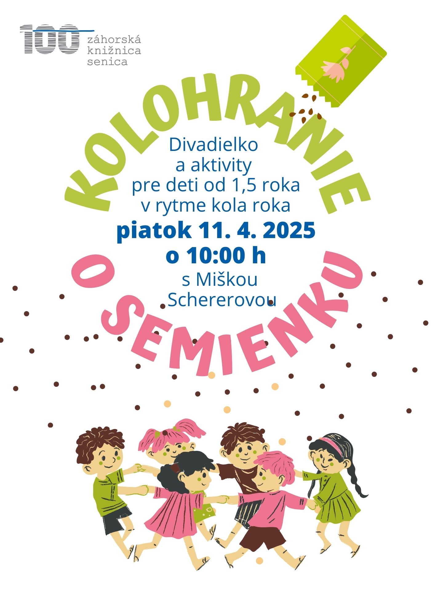 V piatok 11. apríla 2025 o 10 h sa v knižnici môžete stretnúť s obľúbenou Miškou Schererovou, ktorá si pre deti pripravila aktivity v rámci tradičného Kolohrania v rytme roka. Tentoraz budú o semienkach.