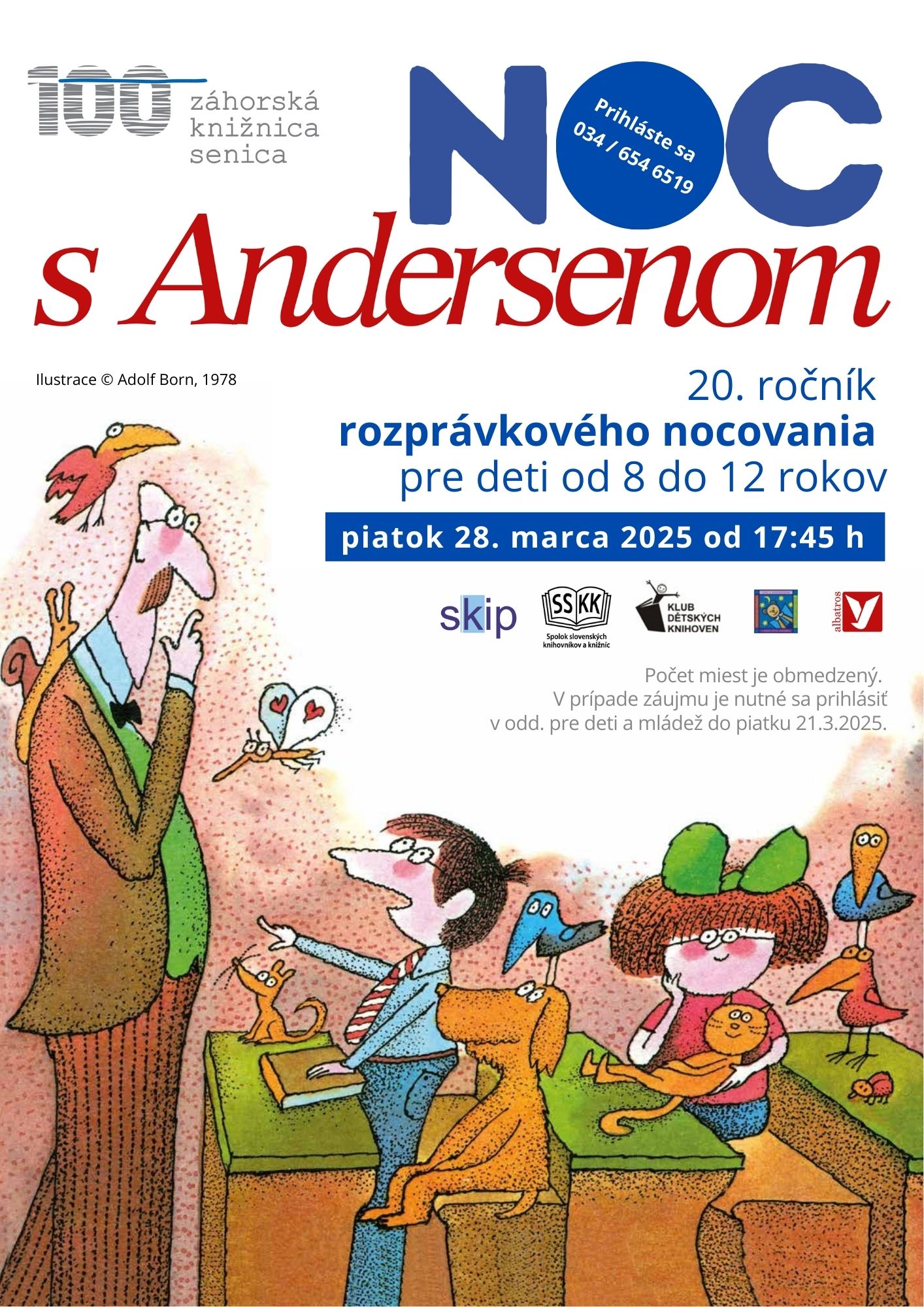 Rok uplynul a opäť zvolávame deti na prespávačku plnú vône kníh a magickej atmosféry nočnej knižnice. V piatok 28. marca 2025 sa po celom Slovensku bude konať obľúbená Noc s Andersenom a my sa pripájame tiež! Podujatie je vhodné pre deti od 8 do 12 rokov. V prípade záujmu je nevyhnutné vopred sa prihlásiť v odd. pre deti 034/654 65 19.
