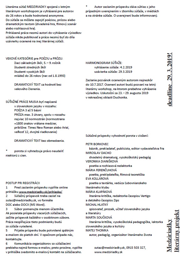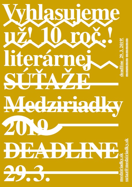 Organizačný tím vyhlasuje 10. ročník literárnej sútaže Medziriadky 2019